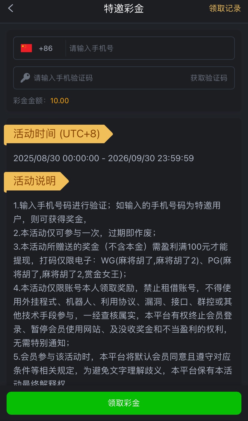 特邀碰瓷注册好优惠里自助申请彩金,仅限:WG电子(麻将糊了/麻将糊了2)PG电子(麻将糊了/麻将糊了2/赏金女王)盈利满100提现