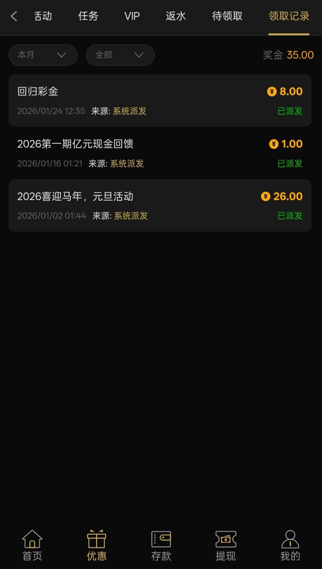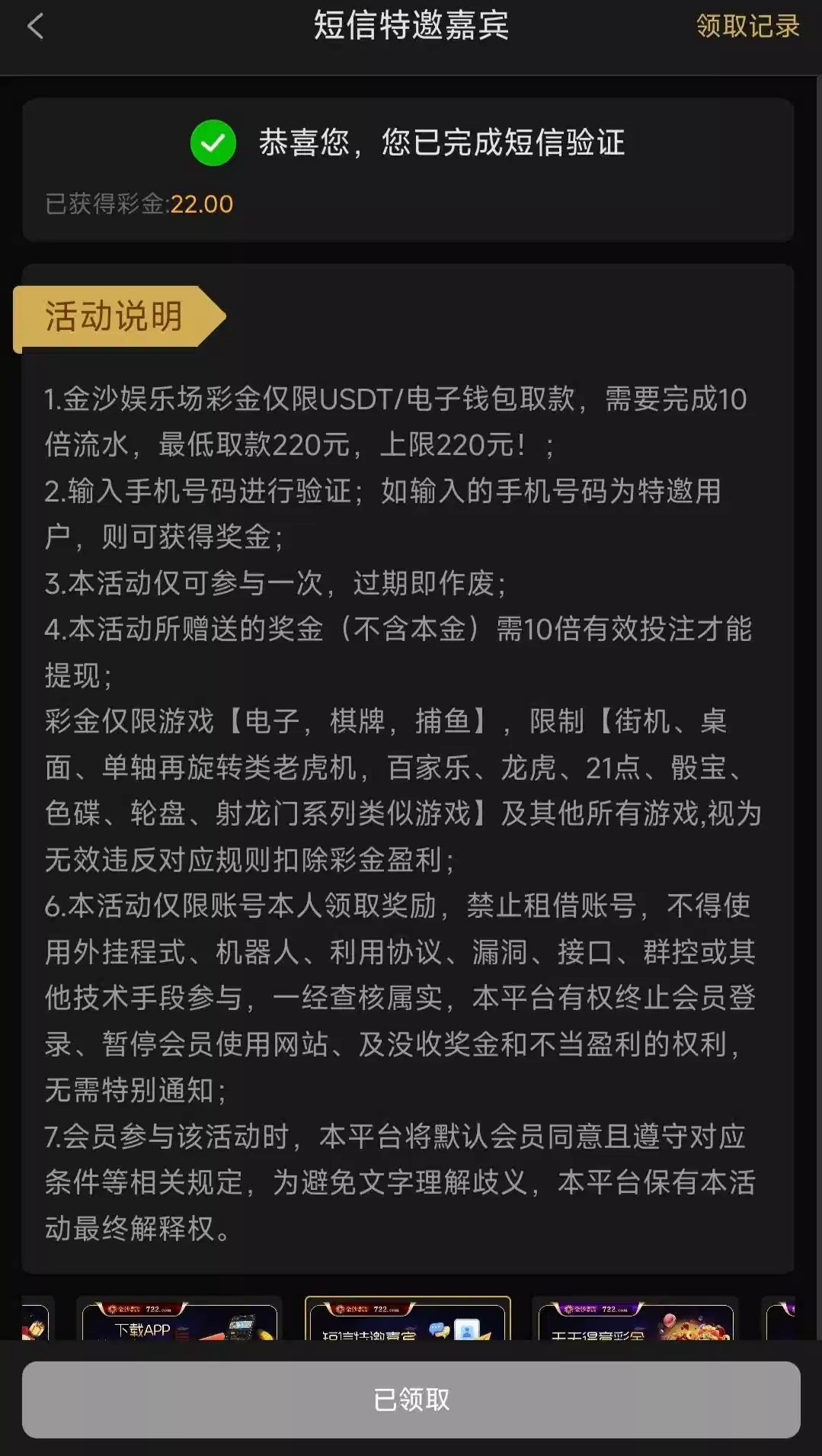 没玩过这个平台的兄弟可以去优惠里碰瓷看一下自己是不是特邀,有号的兄弟登入上去看看优惠里有没有回归彩金领取